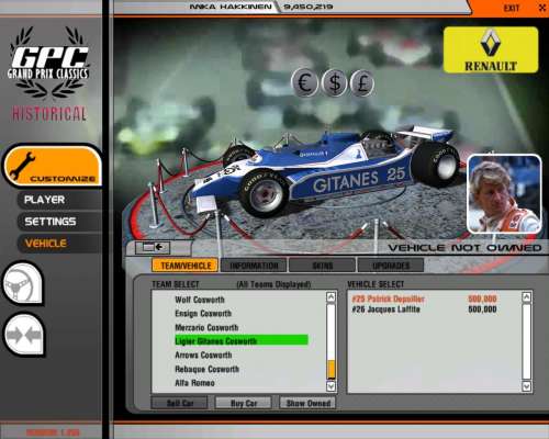 A Ligier és az Arrows között kellene lennie 27 ill. 28 -as rajtszámmal. Az autó adatai megvannak a könyvtárszerkezetben (Vehicles), az .rfm; .veh; .gen fájlok is megvannak. Amennyire átbogarásztam őket ahová hivatkozás van belőlük, ott megvan a file is.