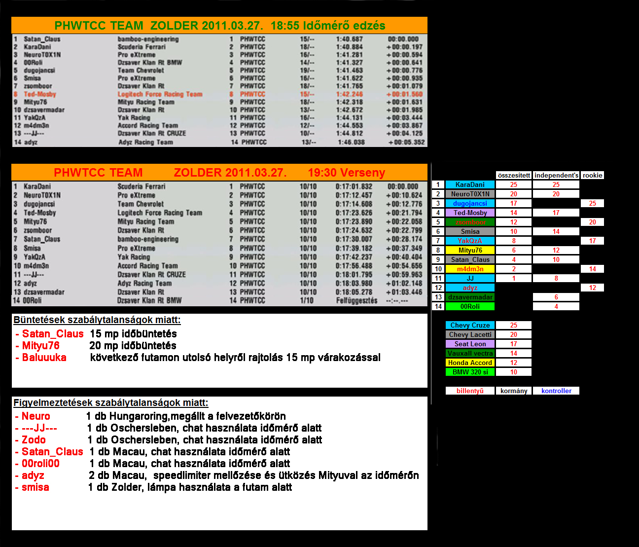 Én amondó vagyok, hogy Neurot büntessük meg, mert önhatalmúlag, diktatórikusan cselekedett - rajtfelállás beállítása - és nem figyelte, hogy te még írtál. Ezért javaslok neki egy 5 perces futam büntetést (Portimao), valamint Brno-ban utolsó rajthely + - mert egy pofátlan nagyképű csíter