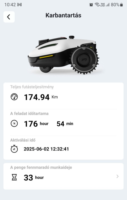 Gyártói videó is van róla azóta, hogy hova kell fújni a WD40-et, és jó lesz, kb. 1 perc az egész. A teljes szezonban vélhetően egyszer elegendő lesz megcsinálni.Ezeket leszámítva semmi nem volt vele, pl. soha nem akadt el, elképesztő milyen terepjárási képességei vannak, ahhoz képest, hogy egy bolygókerekes kisebb gép. Ismerősi körben van egy 600-as, rendszeresen megosztjuk a tapasztalatokat egymással, ott is ugyanez a két hiba volt, más semmi. Ő egyébként annyira belelkesült tőle, hogy kiküldi az utcára is, HomeAssistant nyitja/zárja neki a kaput