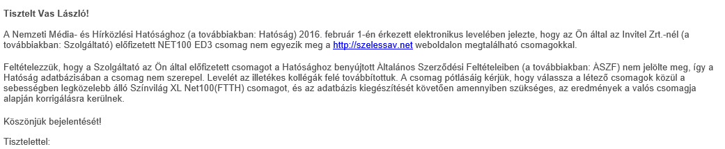 Azt hittem, hogy az NMHH-sról van szó, mert ha jól tudom GoodSpeed-nek csak az van. Bár most az utóbbi néhány hozzászólás nem egyértelmű, mert nem mindig írjátok, hogy melyikkel kapcsolatban írjátok a hozzászólást.
