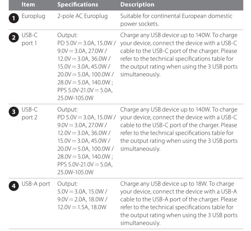 Ezzel szemben ha a két eszköz rajta van, max 40-45W-ra megy fel a töltés. Kábelek mind bírják a 100W-ot.Diagram nincs csak hosszú technikai adatok a különböző portokról.