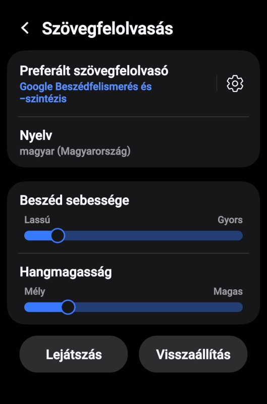 Kisegítő beállítások --> TalkBack --> Beállítások --> Szövegfelolvasó --> Preferált szövegfelolvasó -- "Samsung szövegfelolvasó modul"-ról át kellett állítani a "Google Beszédfelismerés és -szintézis"-re!