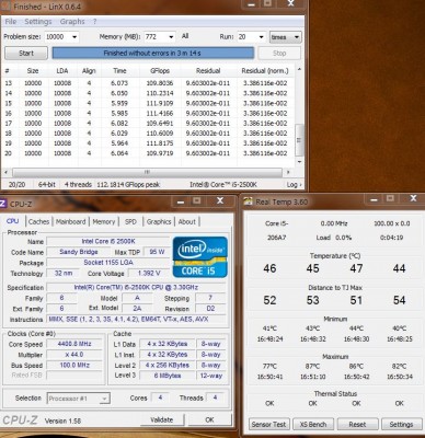 Sapphire Pure Black P67 Hydra lapom van. Szorzót már buzeráltam. 45x szorzót állítottam be és 1,35V -ot adtam a procnak. Az ment simán, 60-70 fok ezzel a beállítással volt. Mondjuk 20 percem volt kipróbálni, mert így is hajnali 4kor végeztem a géppel és 6:30kor már keltem, mert meló...