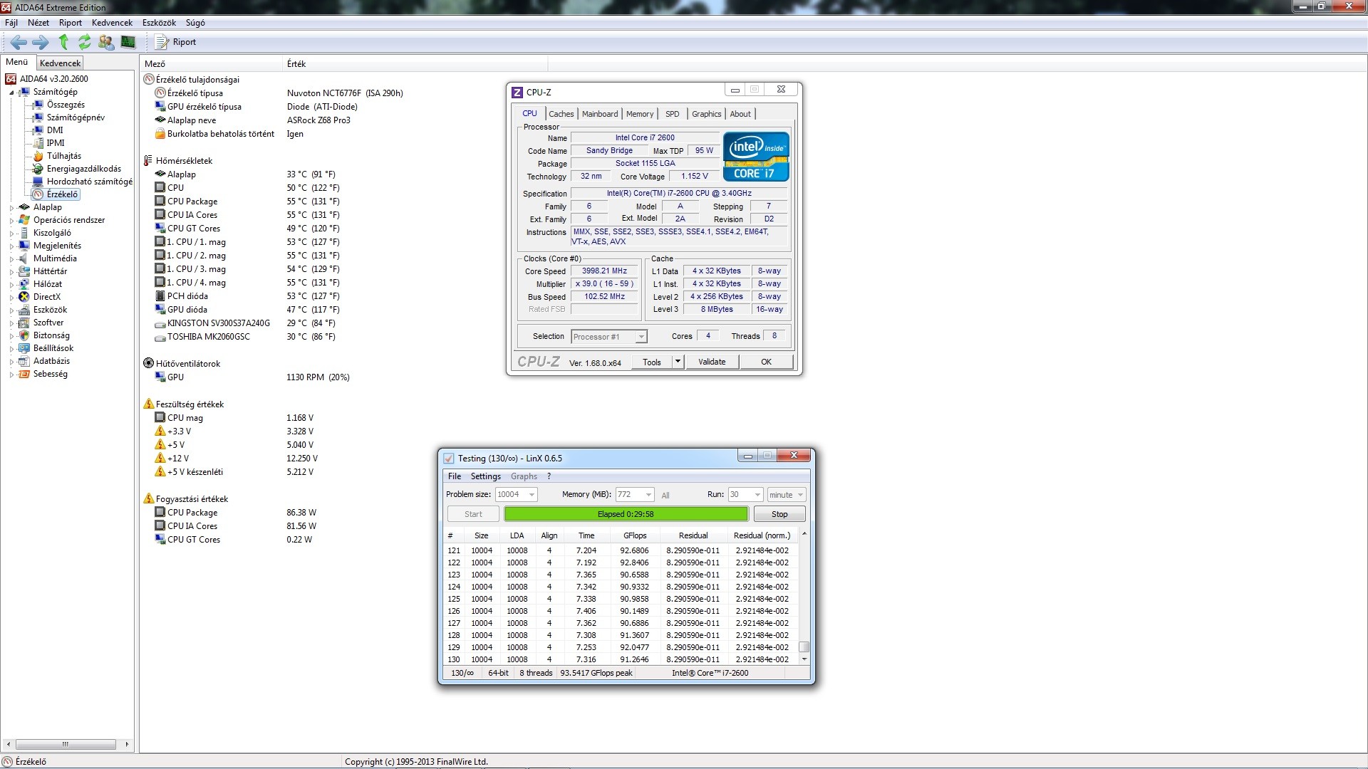GFlop/s a mértékegység, LinX a program neve, stabteszt