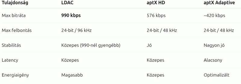 Nem teljesen értem, hogy miért megy a sírás az AptX-ért és a BT6-ért. AptX-et eleve csak Qualcomm cuccok támogatnak, tehát az eszközök jó része kiesik amúgy is, plusz az LDAC-nál az AptX Lossless is max. papíron jobb. A BT6 meg pont semmit nem ad hozzá egy füleshez...