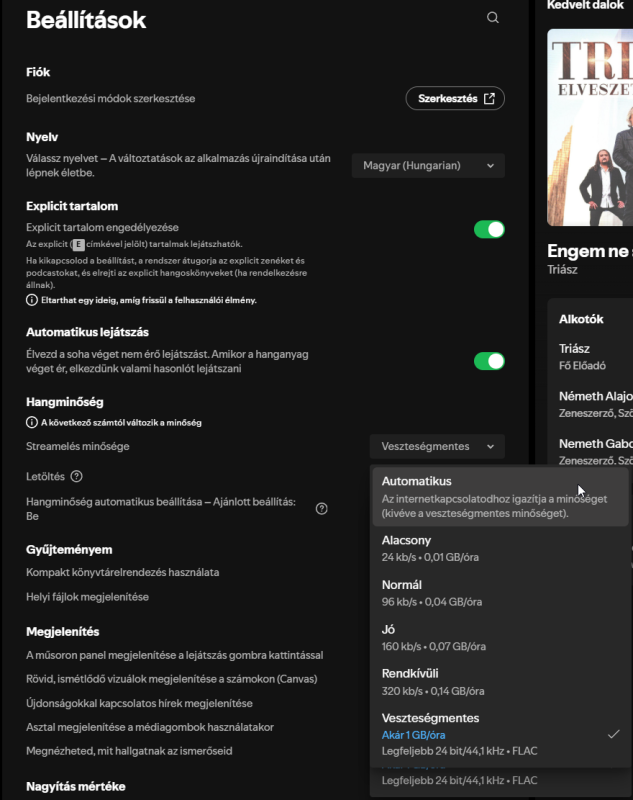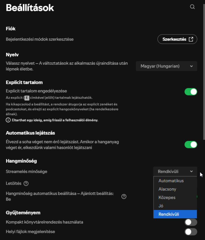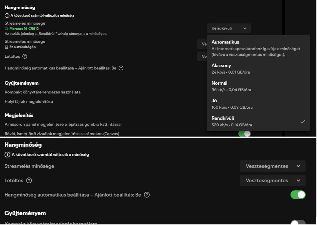 , és úgy tűnik, nem is kell!Elhamarkodtam kicsit, meg kell kövessem a Spoifiyt, ma este már át tudtam állítani a minőséget a hálózati lejátszón is.
