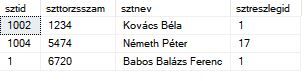 select szttorzsszam , sztnev , klnevhu from szemelytorzs