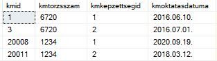 order by akt.id, akt.date;Összefűztem a két táblát, majd minden dátumhoz megkeresem az adott pillanatban érvényes Attr1 és Attr2 értékeket, meg a következő változás dátumát.