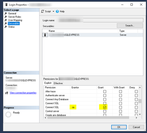 Itt hozzáadtam a local user-t, beállítottam ugyanúgy mint ahogy a domaines user van, mégse jó. Azt se tudom az egyik db-t miért látja, és azt se hogy a másikat miért nem.