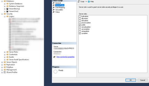 Van egy Veeam szerverünk, amire domain felhasználóval lépünk be. Ki szeretnénk venni a domain-ból a szervert, ezért létrehoztam egy local usert, beletettem az Administrators csoportba, be is tudok vele lépni, viszont az MSSQL-ben csak az egyik adatbázist (VeeamOne2) látom, a másikat (VeeamBackup) nem.