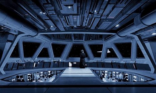 Hm most nézem hogy nem is volt olyan irdatlan magas a szupercsillagromboló parancsnoki terme. Sőt egy ekkora hajónál tulajdonképpen jól van összerakva. Mert mondjuk azt szimbolizálja, hogy ez már egy olyan irgalmatlan csatahajó, hogy megengedheti magának ezt a parancsnoki fedélzetet, nem jelent számára gyenge pontot. (aztán persze hogy jelent, mert majd az A-wing pont ebbe száll bele a végén, hehe)