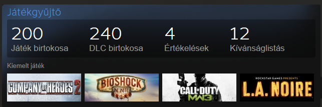 Más: én miért nem tudom azt megnézni, mint Ti? Hiába állítom nyilvánosra a profilom, ugyanúgy azt írja a Steamdb calculator, hogy privát...vártam már pár percet is, akkor is ugyanez.