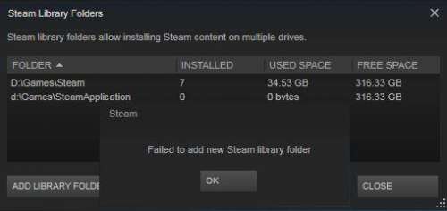 Úgy döntöttem kitakarítom a Steam könyvtárat, lévén hogy már évek óta mindig csak átmásolom és elindítom rendszer újratelepítések esetén, tehát uninstall volt, töröltem a mappát, majd install és update. Megmutattam neki a korábbi játékok könyvtárat, ami nem egyezik meg a telepítési mappával, rögtön fel is ismerte mind a 7 játékot, amit ott talált. Volt viszont a C meghajtón (SSD) is egy Games mappa, ahol mindig azokat a játékokat tartottam, amikkel aktuálisan gyakran játszom, de ezt nem engedi hozzáadni mint játékkönyvtár, miért?