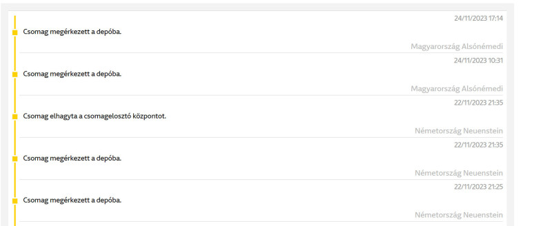 Arra van ötlet, hogy nekem 1 csomagszámon miért két csomag van bejegyezve? Legalábbis a csomaginfó alapján két különböző időpontban érkezett be a németekhez, 1 csomag jött ki, majd megint 2 külön időpontban (cirka 7 óra eltéréssel) érkezett meg Alsónémedibe.
