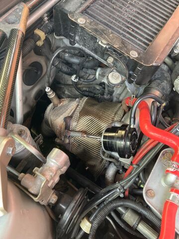 Két nagy radi vízcsövet kidobtam (vagyis eltettem emlékbe), mert valami nem túl okos szerelő a múltban nem tudta a SAMCO méretpontosan gyártott piros szilikon csövet anno feltolni a helyére, ezért megvagdosták tapétavágóval. Gratula. Eredmény: Mostanra a nyakánál eresztett a felső és az alsó cső is. Aztán kibányásztam az intercoolert is nemrég, mert mert alatta a két throotle body coolant cső szivárgott (lehet van még máshol is, de egyelőre ezeket fedeztük fel a blokk tetején lévő apró tócsákból és szivárgások jeleiből kiindulva), de ezek vágható, duplán erősített csővel lettek pótolva, mivel ide már nem tudsz semmit se rendelni.