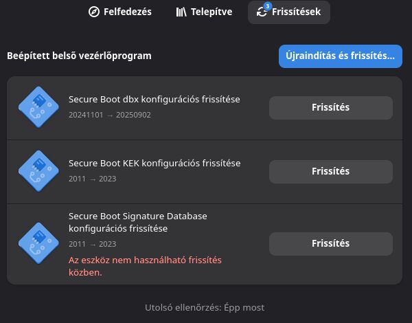 Viszont a Szoftver csak néhány secure boot frissítést jelez, miközben van egy rakat csomagfrissítés.