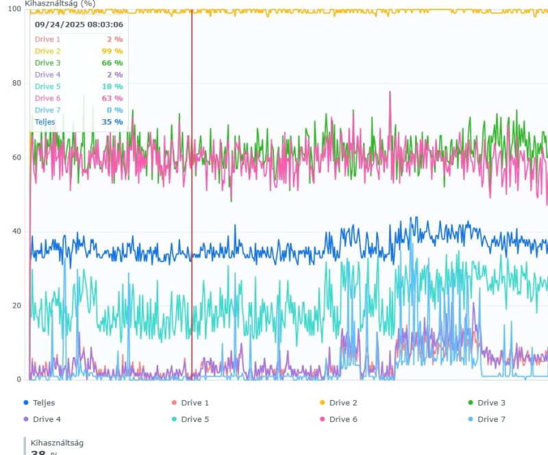 oké most megy a kötet újraépítés, és 4 meg 10 tb-s lemezek is vannak bent, meg tudom hogy ez nem egy kapkodós művelet, ezzel nincs baj, de felfogni nem tudom hogy mitől akad ki a 2-es lemez 100%-os terhelésre amikor látszólag egyáltalán nem kéne neki.Ja nyilván minden ami szivatja a kötetet az le van álíltva, ds-től dockerig áll minden...