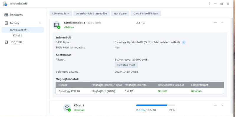 Rendelkezem egy 2 fiókos DS 218+ nas-al, amiben 1db 4TB HDD van, a következők szerint: