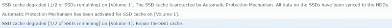 Néhány napon belül összeomlott a gyorsítótáras kötet, még szerencse, hogy ezek RAID1-ben vannak, így nem volt adatvesztés.