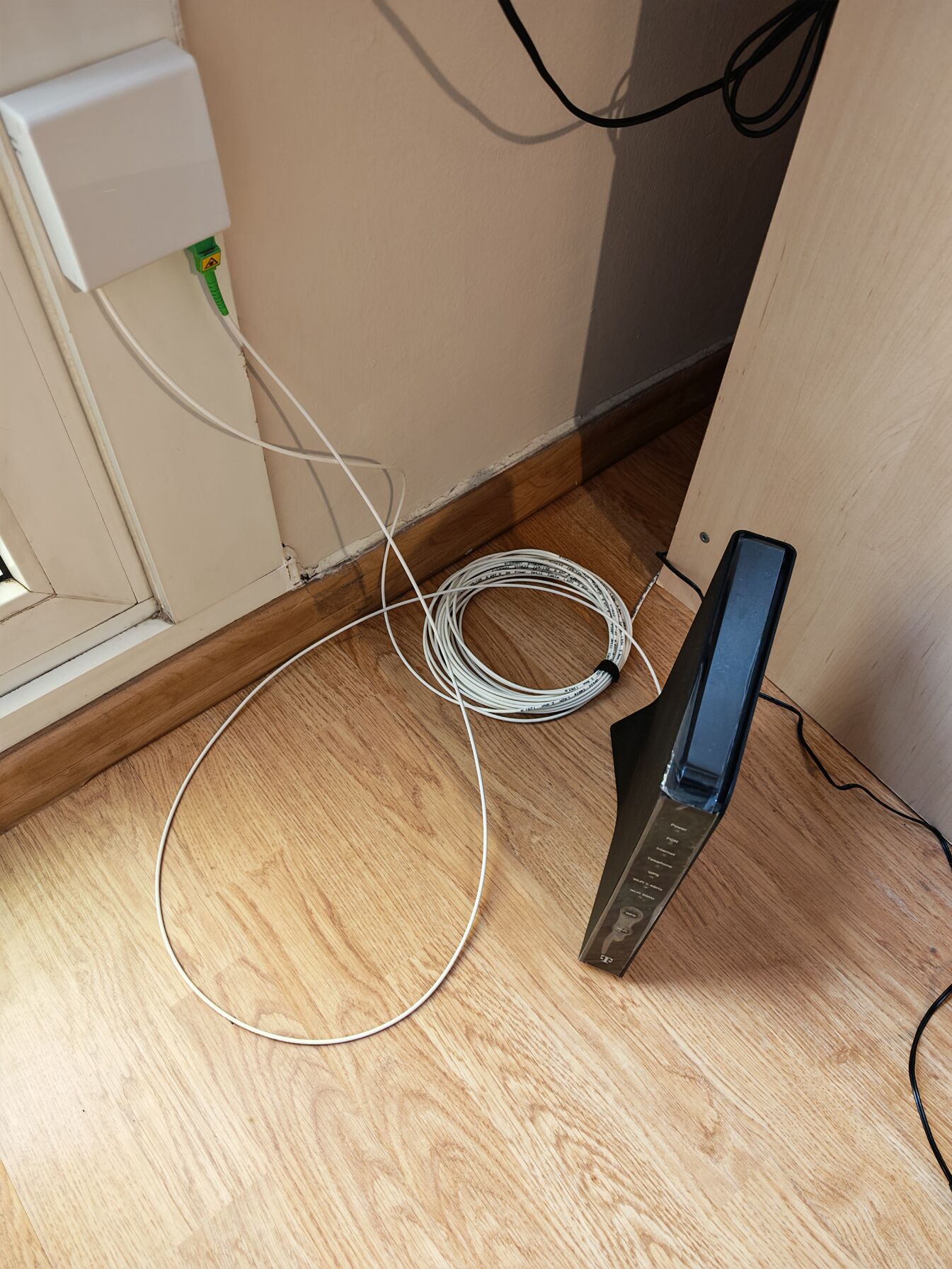 A Router jelenleg a TV alatt van egy szekrényen mert a Koax kábel ott van amivel össze van kötve a Router.