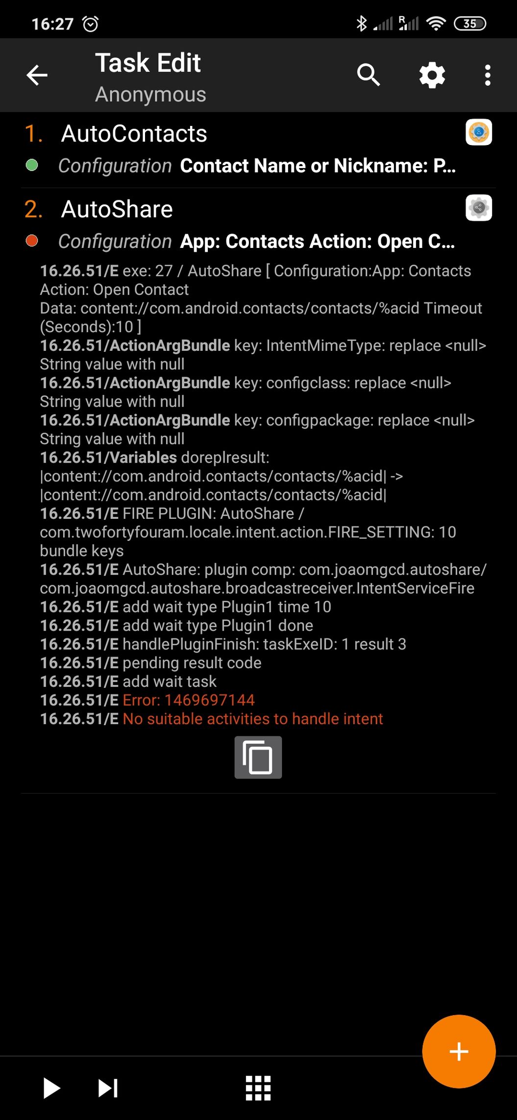 Meg tudnátok mondani miért dob hibát az autoshare open contact intent?
