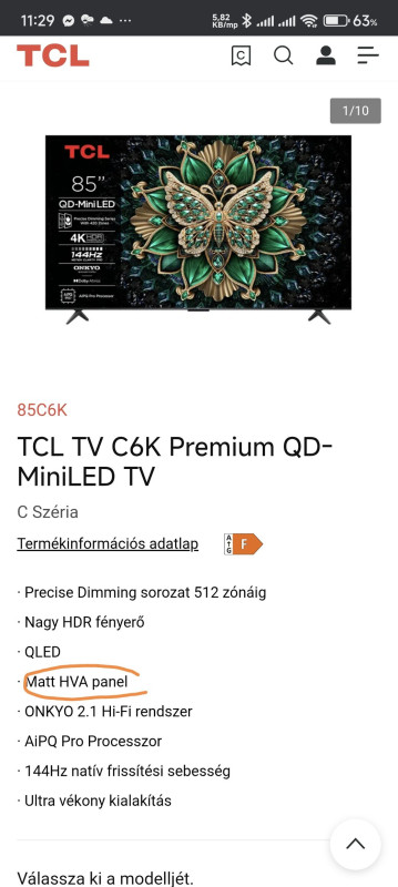 Ma először láttam MediaMarktban TCL tv-t, egyetlen darab volt egy 75 ,/vagy 98? / C6K, nagyon jó képe volt és ami feltűnt hogy teljesen matt a kijelző.Biztos elvérzik egy sötét szobàban,de az üzletben nagyon menő volt.