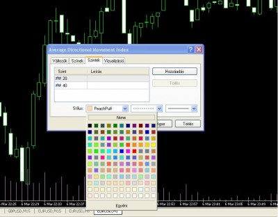 ADX tulajdonságok: Szintek fül alatt állítható a szín