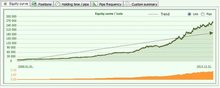 A kereskedés viszonylag gyakori, több mint 3000 kötés elég szignifikáns minta. Ez gyakorlatilag majdnem napi egy pozíciót jelent. Nyilván M5-höz viszonyítva kevésnek tűnhet, de elég speciális a mozgás, ami nem feltétlenül jelentkezik minden nap.Szerk: