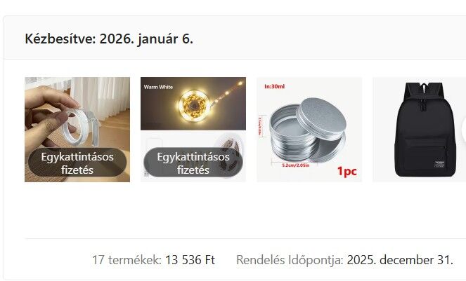 december 31.i rendelés, és a mai, január 6.-i kézbesítés..