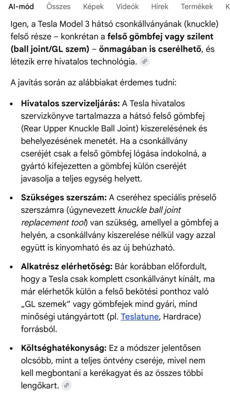 Nekem tavaly tavasszal cserélte gariban futóműben Tesla azt amit csereérettnek gondolt.