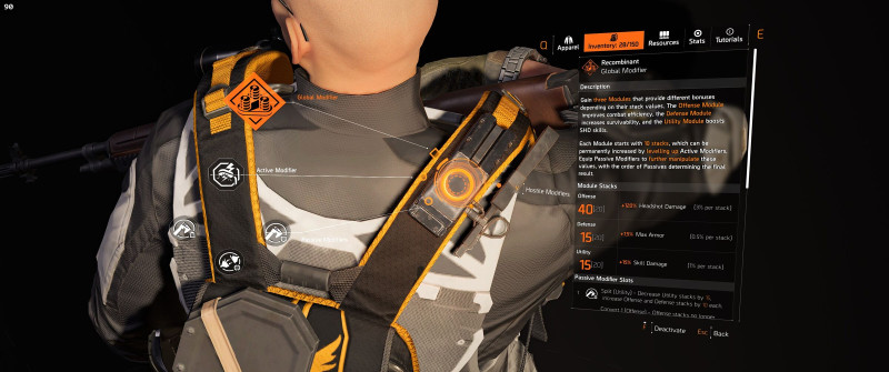 These 3 together will increase your headshot damage by 3% per stack and increase your stacks by 10 while making each stack 50% more valuable, equating to 30 total (negatives are reversed from nullify) for a total of 135% headshot damage, and effectively 45 offensive stacks, in addition to keeping 10% max armor and 20% skill damage.- Next, Defensive Stacks. You can either go max armor or a personal favorite, 22.5% PFE.