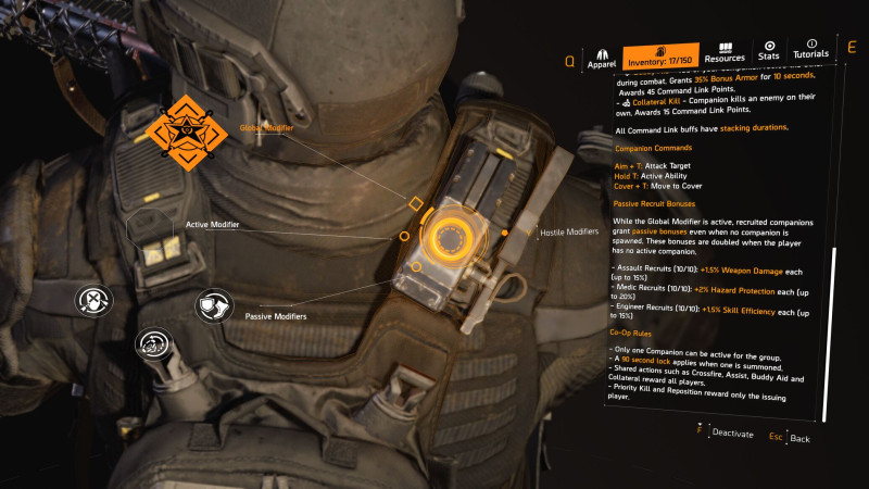 Garsza: Bekapcsolod a season modifiert, akkor open world-ben és safe house-ban találkozol Companionokkal. Célszerű safe house-ok között ugrálni és ha melléjük mész, akkor tudod recruit-olni őket. Pár perc alatt össze lehet szedni az összeset. Mindhárom fajtából ha összeszedsz 10-et, akkor kapsz 30% Weapon Damage, 40% Hazard Protection és 30% Skill Efficiency ha nem raksz be belőlük (mint a képen, üres legyen)