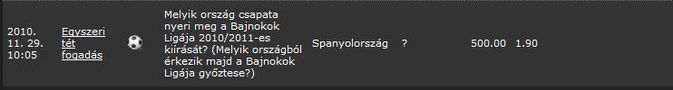Barcelona - Manchester Utd. H 1.93Szóval ha nyer a Barca nyerek így akkor 500 forintot...