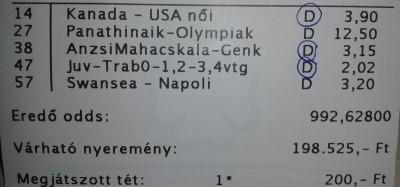 Imádom amikor a 3/4-en a két kis odds (2,4x és 2,7x) elmegy és a két nagy odds (3,2x és 5,9x) meg jön...