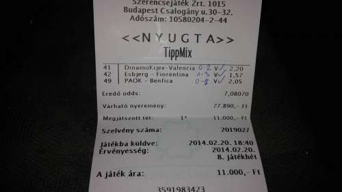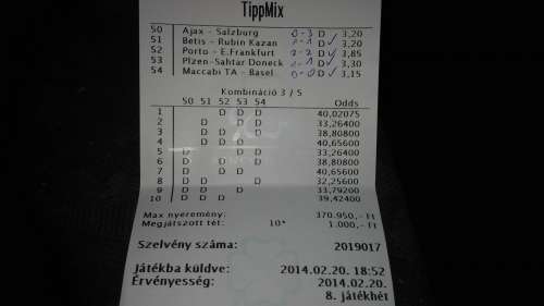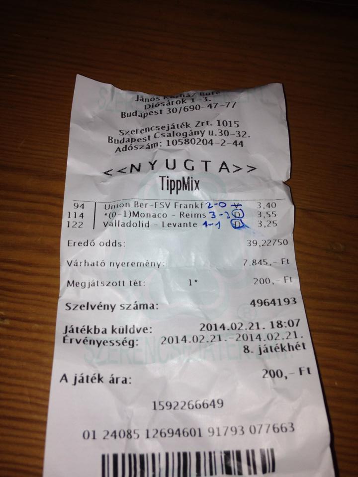 Buktam 50 Ft-ot, mert tettem egy ezrest a bónuszból a Schalke-Mainz 2-1 pontos végeredményre. De nem jönne, ezért inkább kifizettettem 950-ért.