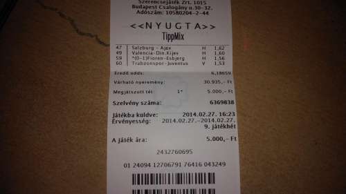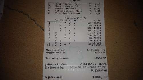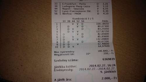Először is raktam egy kamit 5x200 Ft-al, vettem egy puttót 1000 Ft-ért, és 2 Bukszát. Puttó pont előtte raktam mielőtt húztak, beadom nézzék meg kuka...Jönnek a kis bukszáim, kaparom az elsőnél a betűket W Z J jó mondom kuka verjem bele, jön a másik első betű S, jó mondom ez is kuka, kaparom tovább még 2 db S betű rotty 9 ezer...