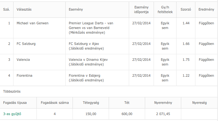 Melyik az az oldal ahol össze tudok rakni egy szelvényt, és kiírja hogy melyikkel mennyit nyerhetek?