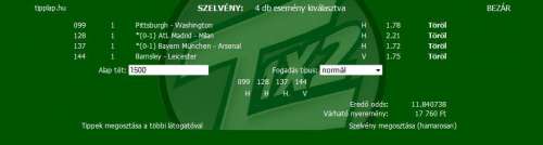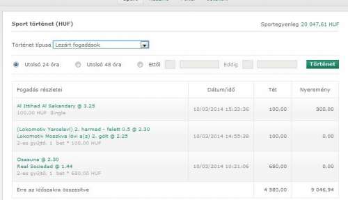 én ezért hagytam abba, mert a kis tét kevés meccs elment, nagy tét kevés meccs elment, kis tét sok meccs elment, és egy kettőn attól függ mennyi volt az esemény. Ha kombiba raktam elment...