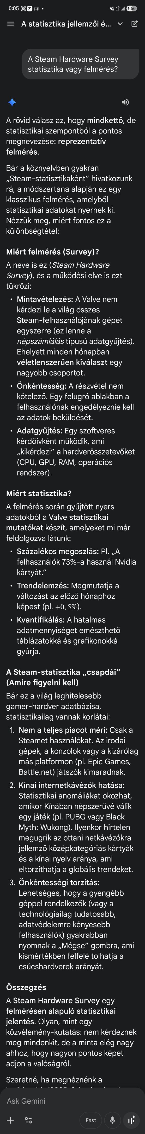 Persze, ezt mondom én is. Egyik végletet sem szeretem. Részemről csak annyi, hogy a statisztika az statisztika, a felmérés pedig felmérés, és a Steam felmérést (survey) [készít, ad, és] ír ki az oldalán, nem statisztikát (statistics), így annak hívni mikor a Steam sem annak tartja eleve téves, ezért én sem egzakt statisztikának tartom, hanem - ilyen-olyan - felmérésnek. Egyikhez vannak elvárások, másikhoz nincs, ennyi.