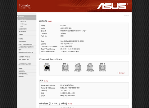 Tomato 1.28 by shibby SW fut egy ASUS RT N18-U routeren.