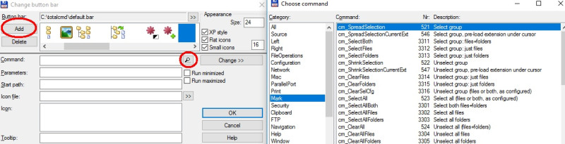 A TC eszköztárra szeretnék egy gombot ami kijelöl könyvtárakat, amelyeknek a nevében bizonyos karaktersor van.