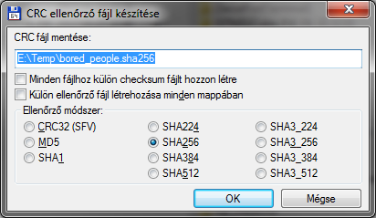 Ha egy mappát választok, akkor a mappa összes fájljára kiszámolja az ellenőrzőösszeget és az ellenőrzőösszeget tartalmazó fájlban minden egyes fájl külön sorban van.
