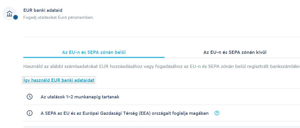 Egyszerű utalás 0.63 EUR fix díj 0.12% változó díj -