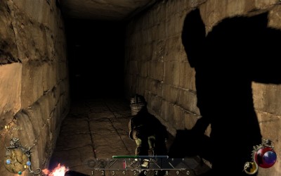 ?Azok az árnyékok báz... itt is _tényleg_ töksötét van, a fáklya ennyi, nem több... meg a hatalmas árnyékom, ahogy mászkál a falon... creepy...