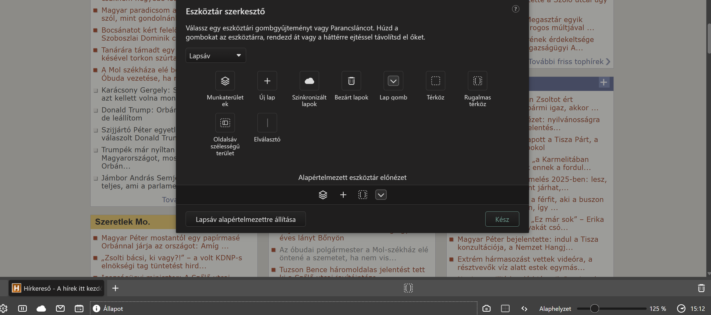 azt hol tudom átállítani, hogy a tabulátorok utáni üres mezőbe kattintva, a jobbklikkes menü ne a windows menője legyen (áthelyezés, előzőmért, bezárás stb., ugyanaz, mintha a legfelső fejlécre kattintanék), hanem a Vivaldi saját jobb klikkes menüje (Lapsávmenü: új lap, bezárt lap újra nyitása stb. ). A most használt 7.3-ban sikerült átállítani, de elfelejtettem hogyan. ?