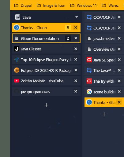 Linux alatt (ZorinOS) nálam nem lehet a (másik gép böngészője) synced tabokat workspace csoportok szerint megnyitni. Csak a komplett gép mentett tabokat egyben, de azokat sem workspace csoportban állítja vissza, hanem egybe minden. Akár száz tab egy sorba.