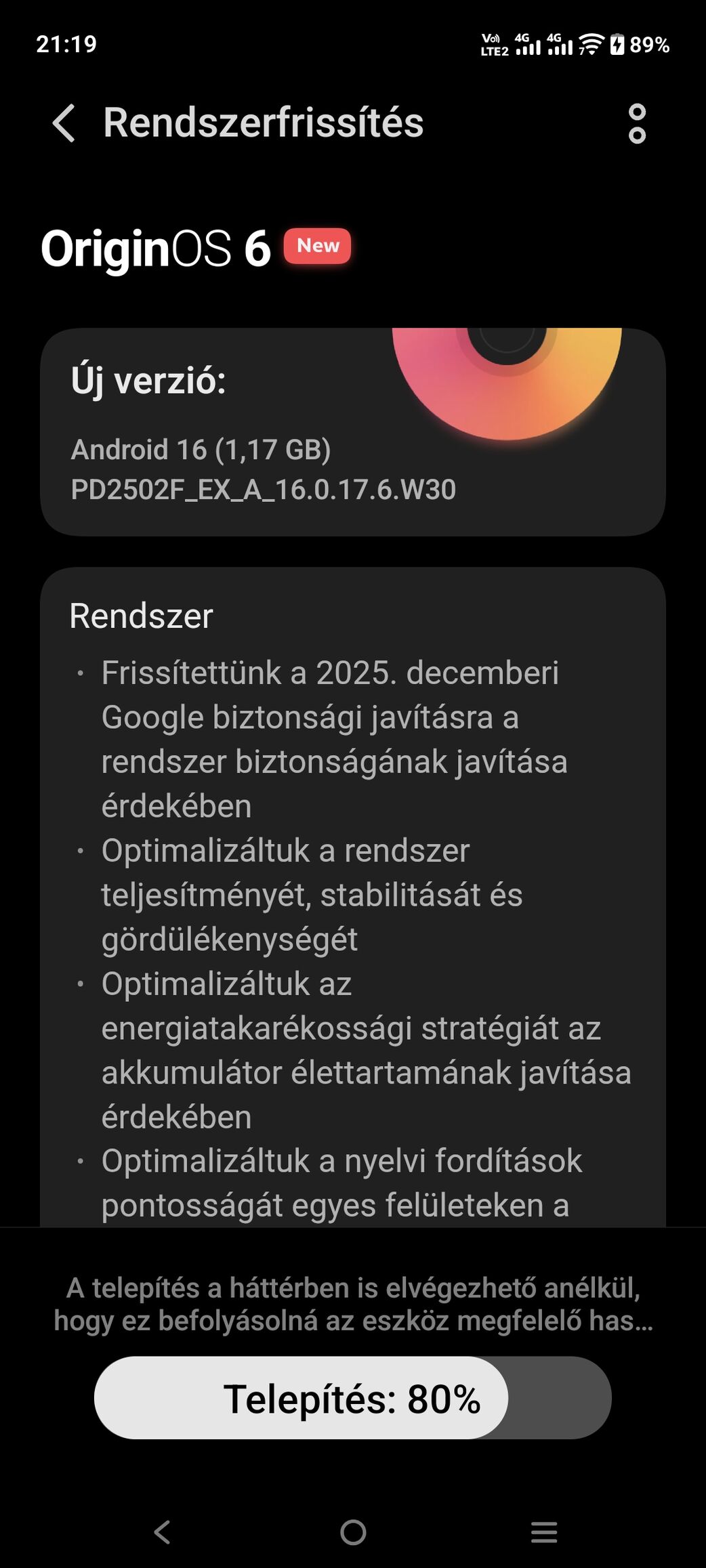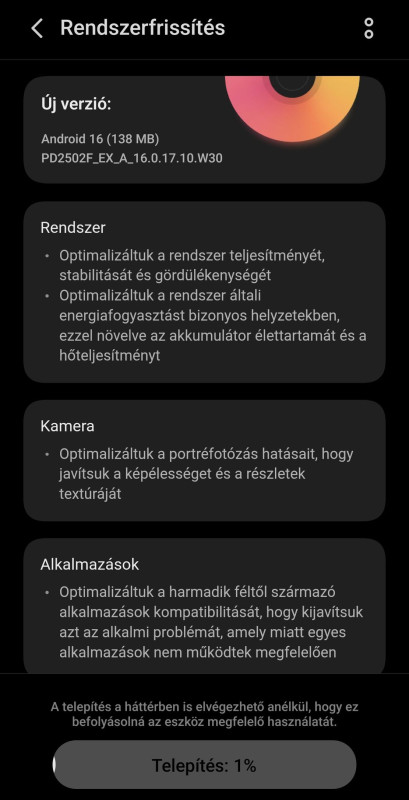 Ez a 3. Frissítés 1 GB felett, mióta nálam van a teló.
