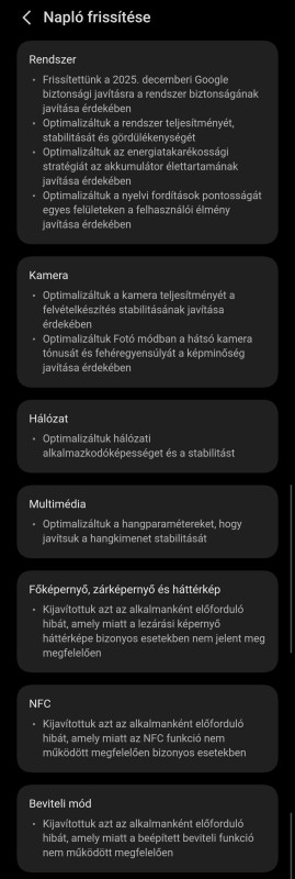 az első frissítés rögtön üzembe helyezésnél érkezett, a második ezeket ,akku,kamera nem tartalmazta,így nem tudom véleményezni.