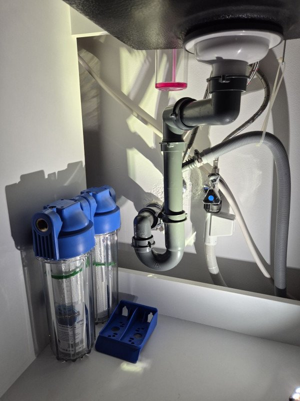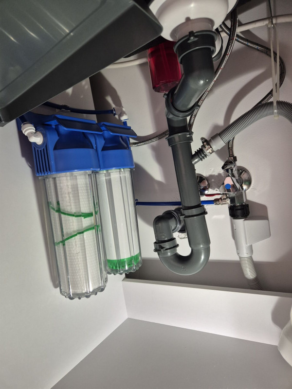 Ma volt egy kis időm, összraktam a vízszűrőt. Elsőre jó lett! Nem csepeg sehol és a víznyomás is nagyon minimálisan csökkent, szinte észrevehetetlen.