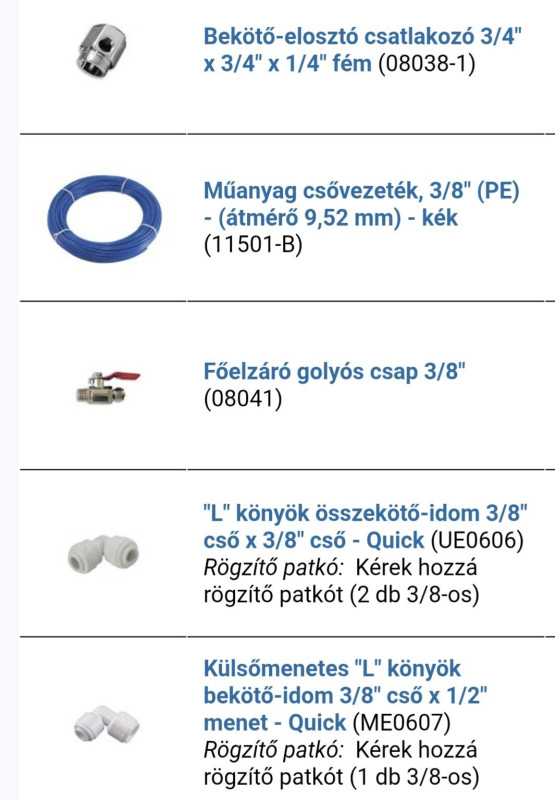 Az a durva, hogy mindenhol csak 1/4-es csövek vannak, ritkán találni 3/8-ast. Az idomok is 1/4-esek többnyire. A bekötő idom, ami a listában is van az oldalsó furat csak 1/4-es